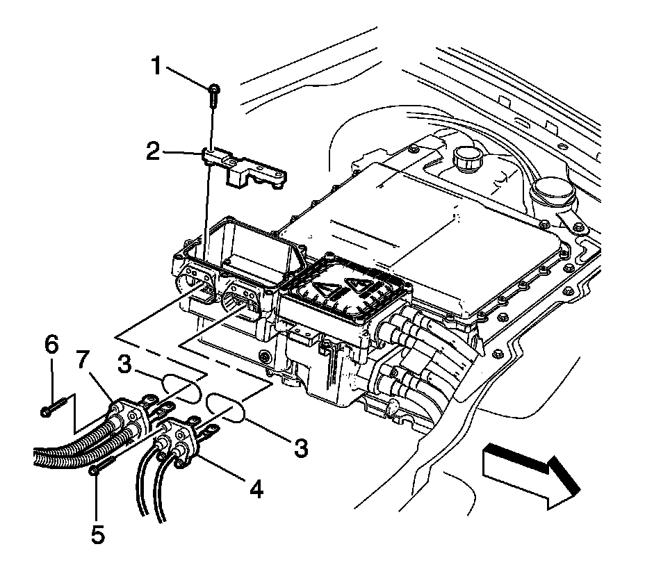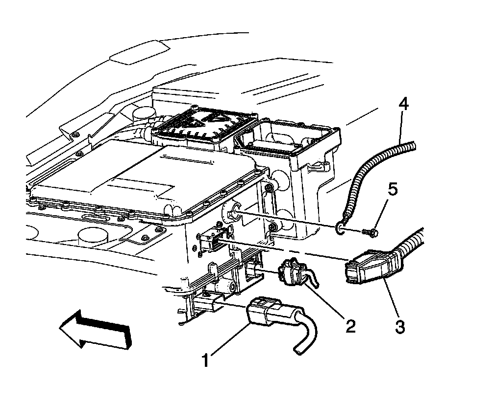 2. Disconnect the drive motor generator control module assembly connector (3).