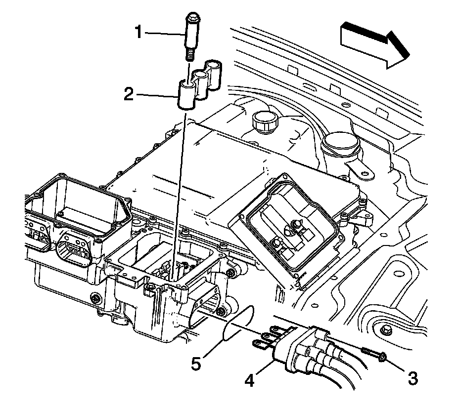 29. Install the HV dc electric ACCM cable mounting fasteners (5) and tighten to 9 Nm (80 lb in).