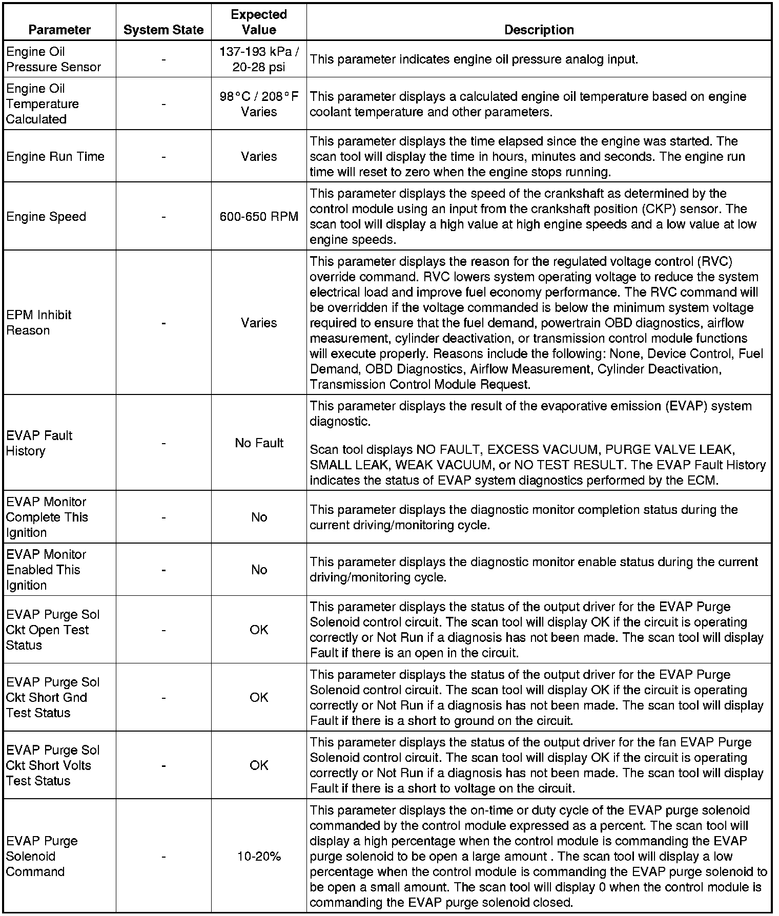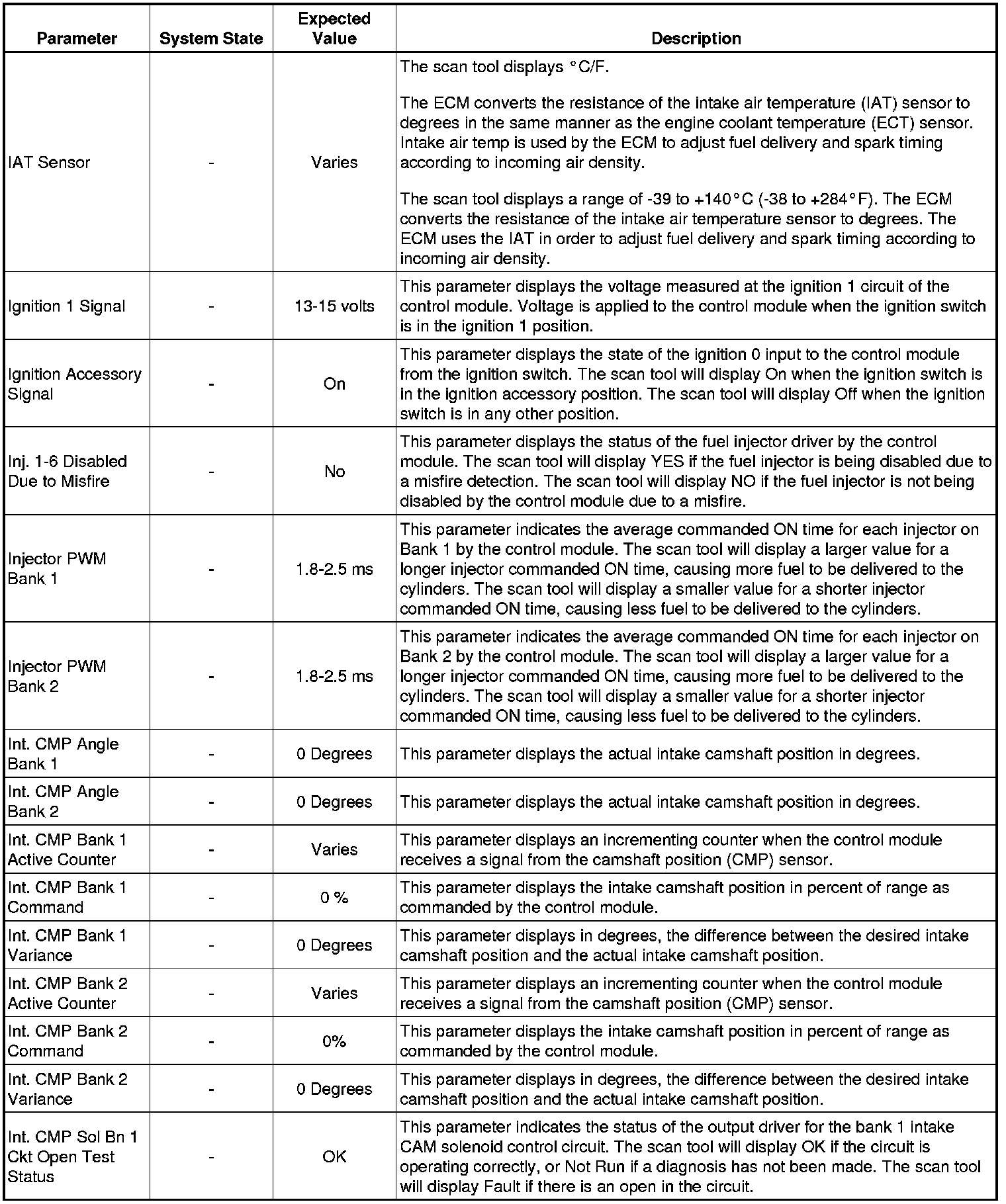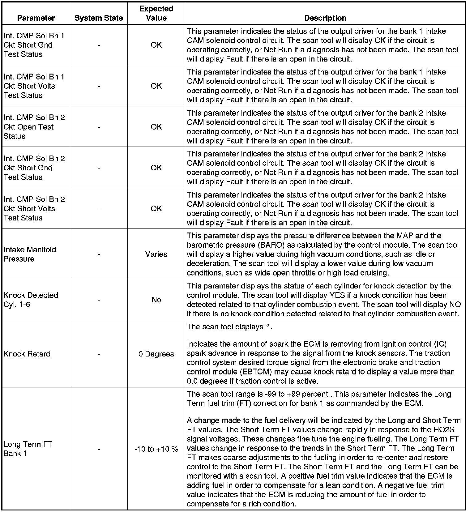The Engine Scan Tool Data List represents values that would be seen on a normally running engine under the conditions listed below.