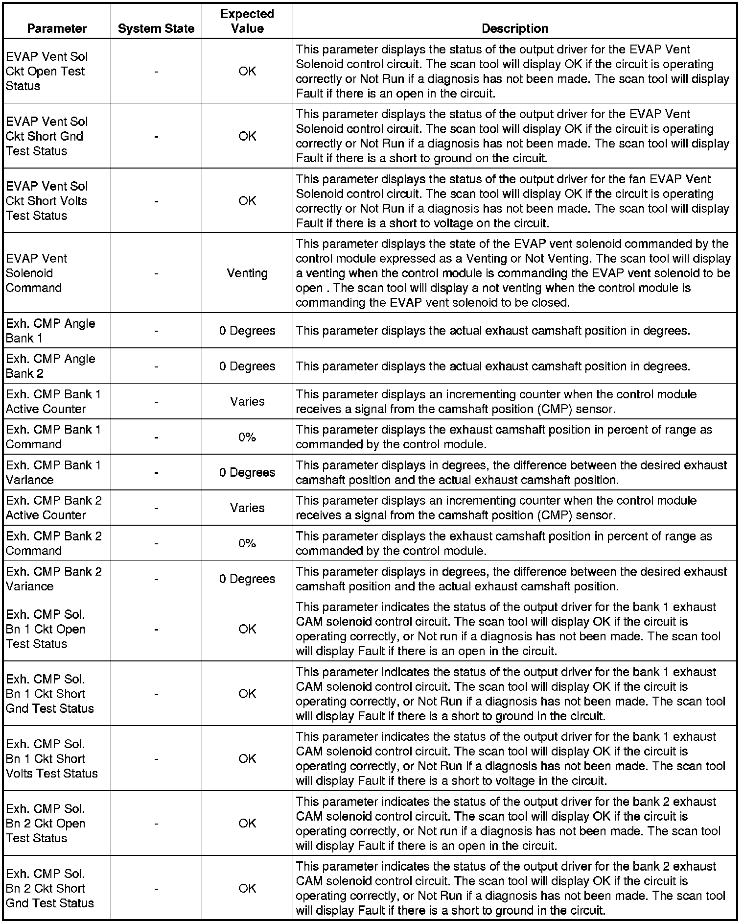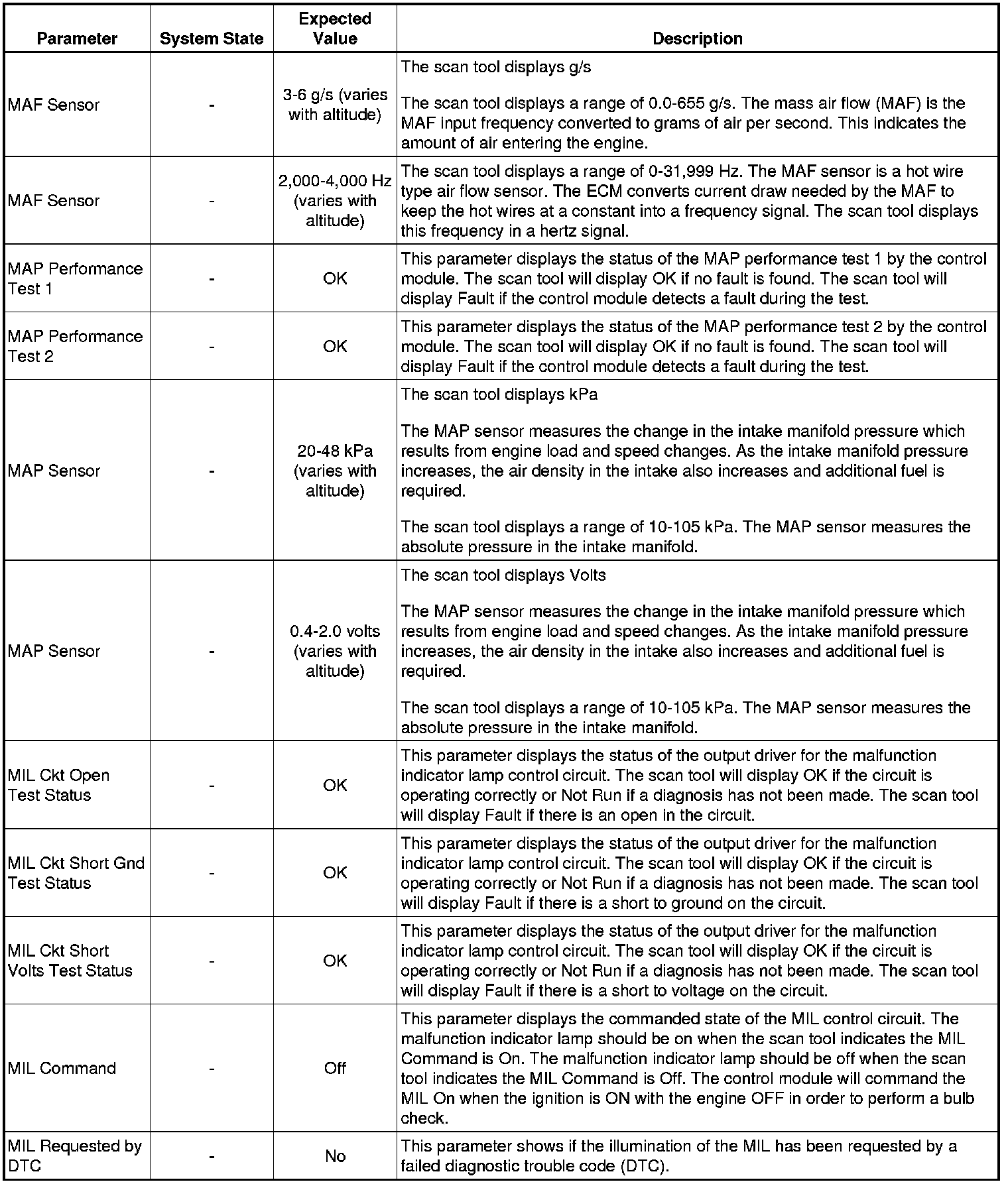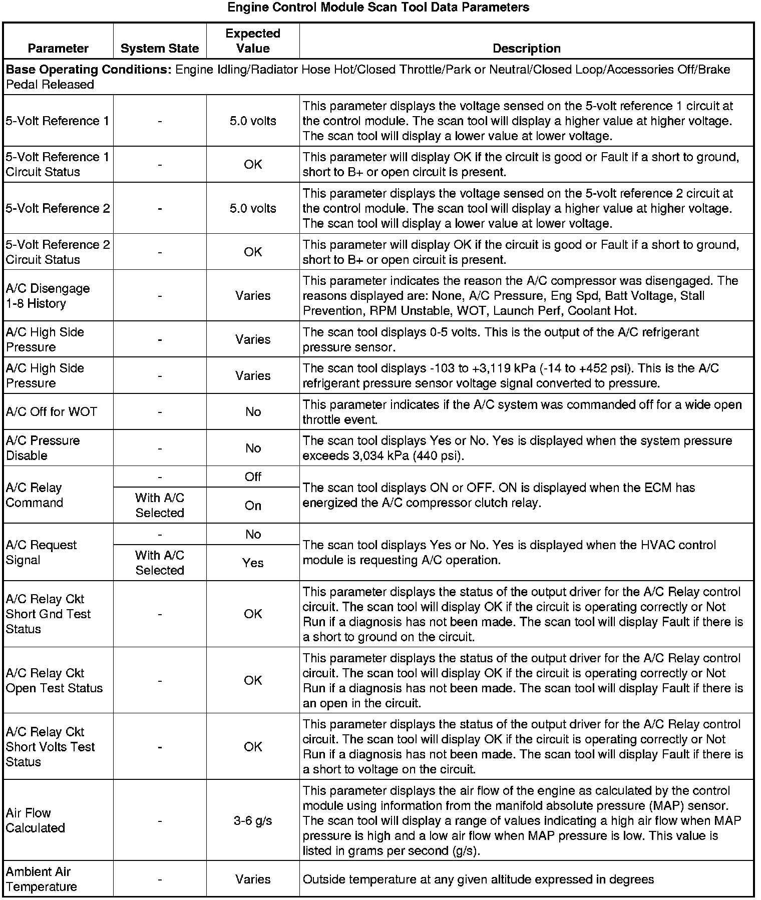 The Engine Scan Tool Data List represents values that would be seen on a normally running engine under the conditions listed below.