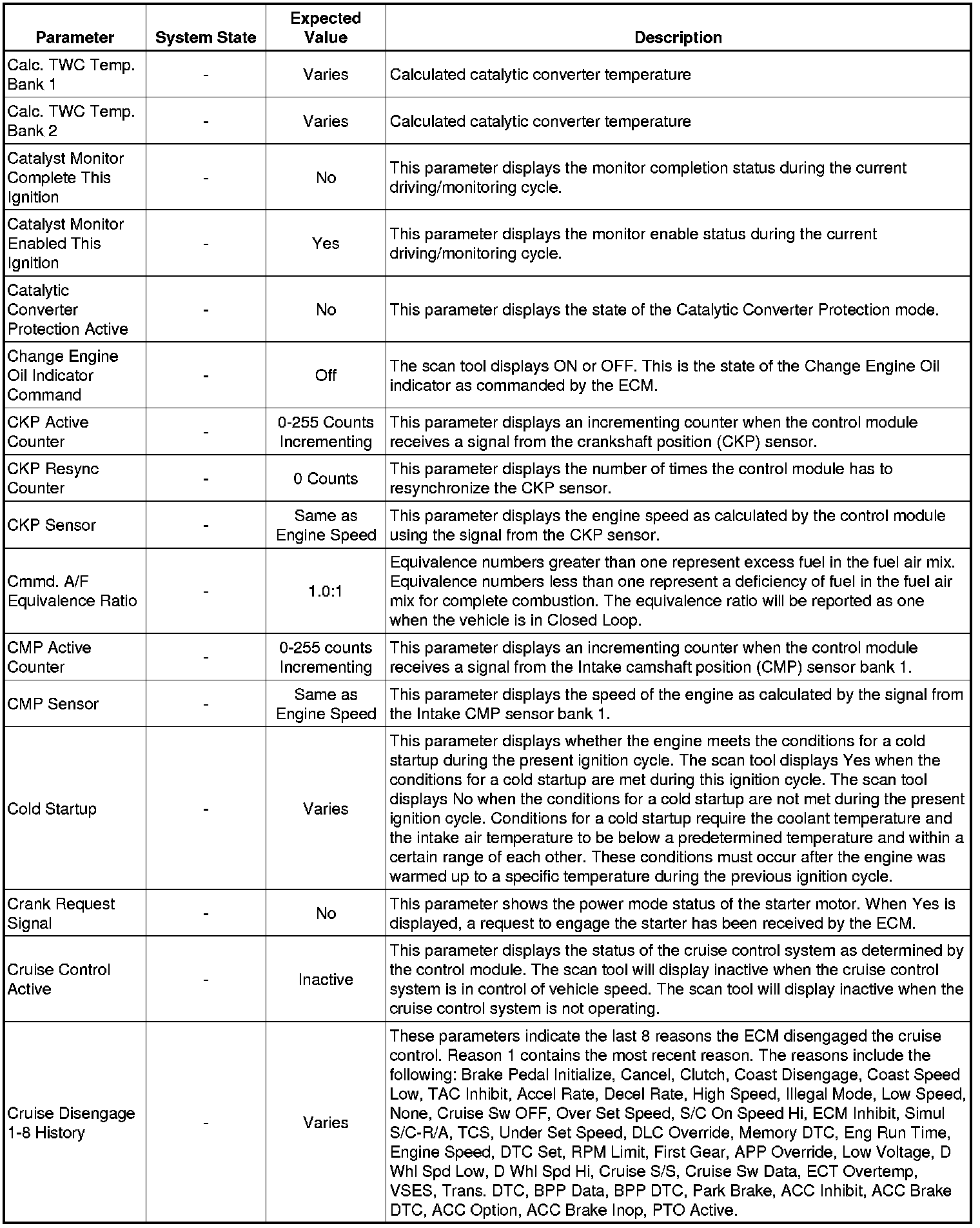 The Engine Control Module (ECM) Scan Tool Data List contains all ECM-related parameters that are available on the scan tool. The list is arranged in alphabetical order. A given parameter may appear in any one of the data lists, and in some cases may appear more than once, or in more than one data list in order to group certain related parameters together.