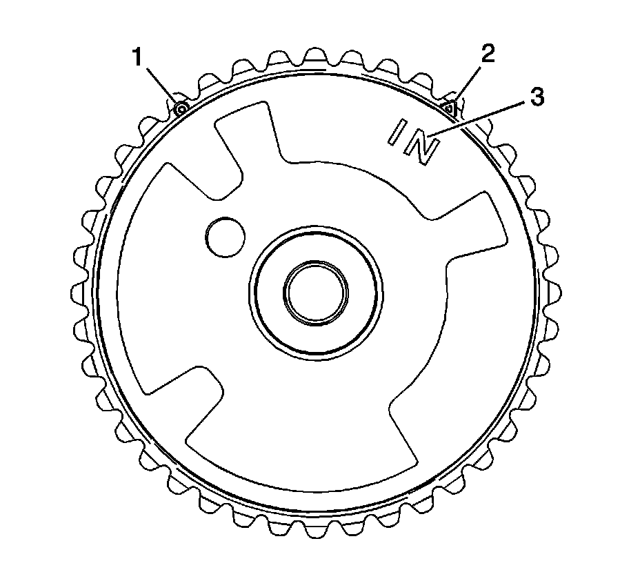 1. Ensure the proper camshaft position actuator is installed. Observe the body of the camshaft position actuator for the IN marking (3).