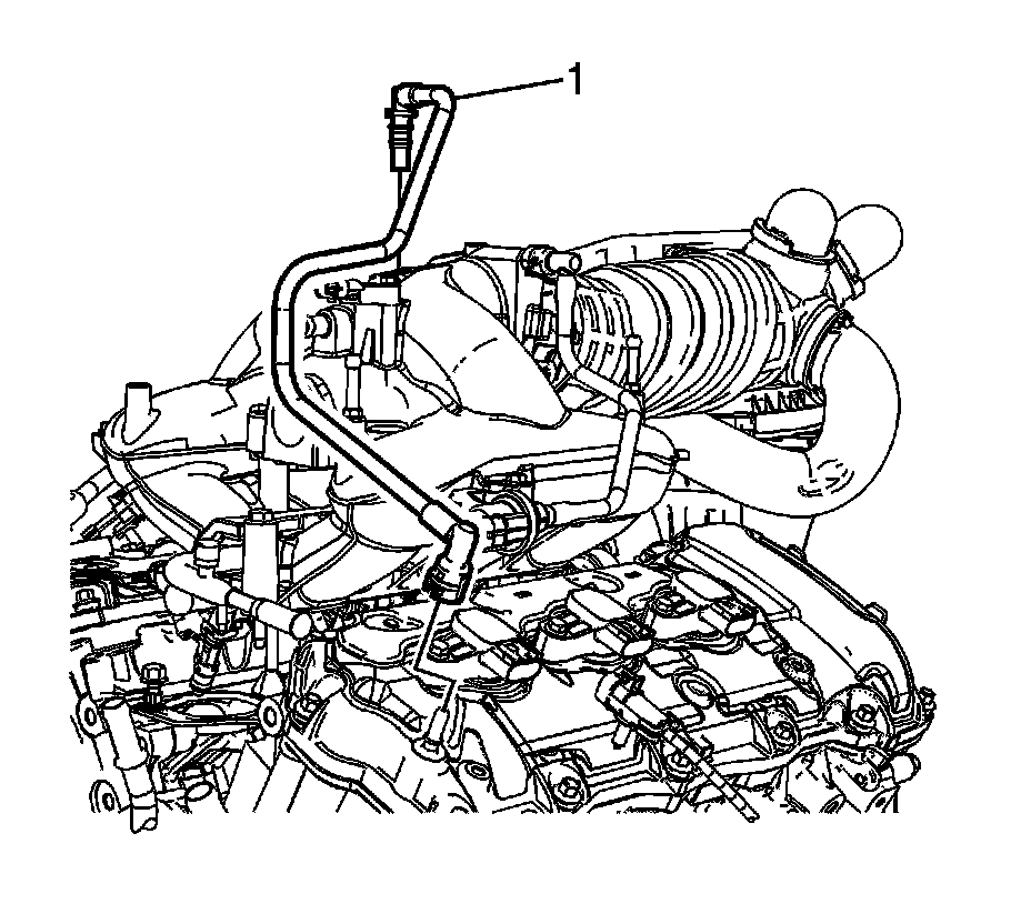 2. Disconnect the positive crankcase ventilation (PVC) fresh air pipe (1) from the upper intake manifold.