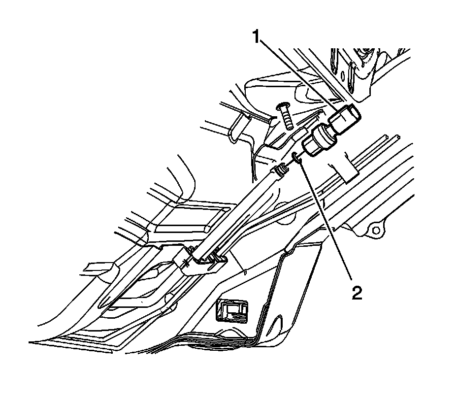 2. Disconnect the body wiring harness electrical connector (1) from the fuel pressure sensor (2).