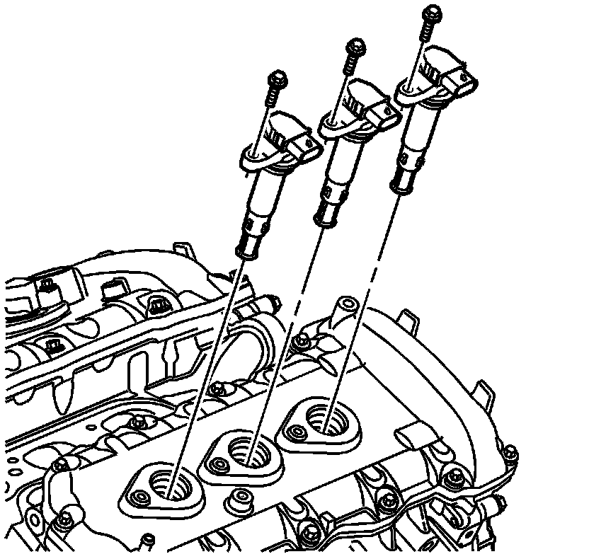 2. Install the ignition coil bolts and tighten to 10 Nm (89 lb in).