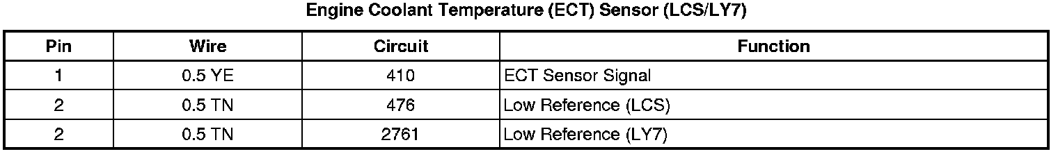 Engine Coolant Temperature (ECT) Sensor (LCS/LY7)
