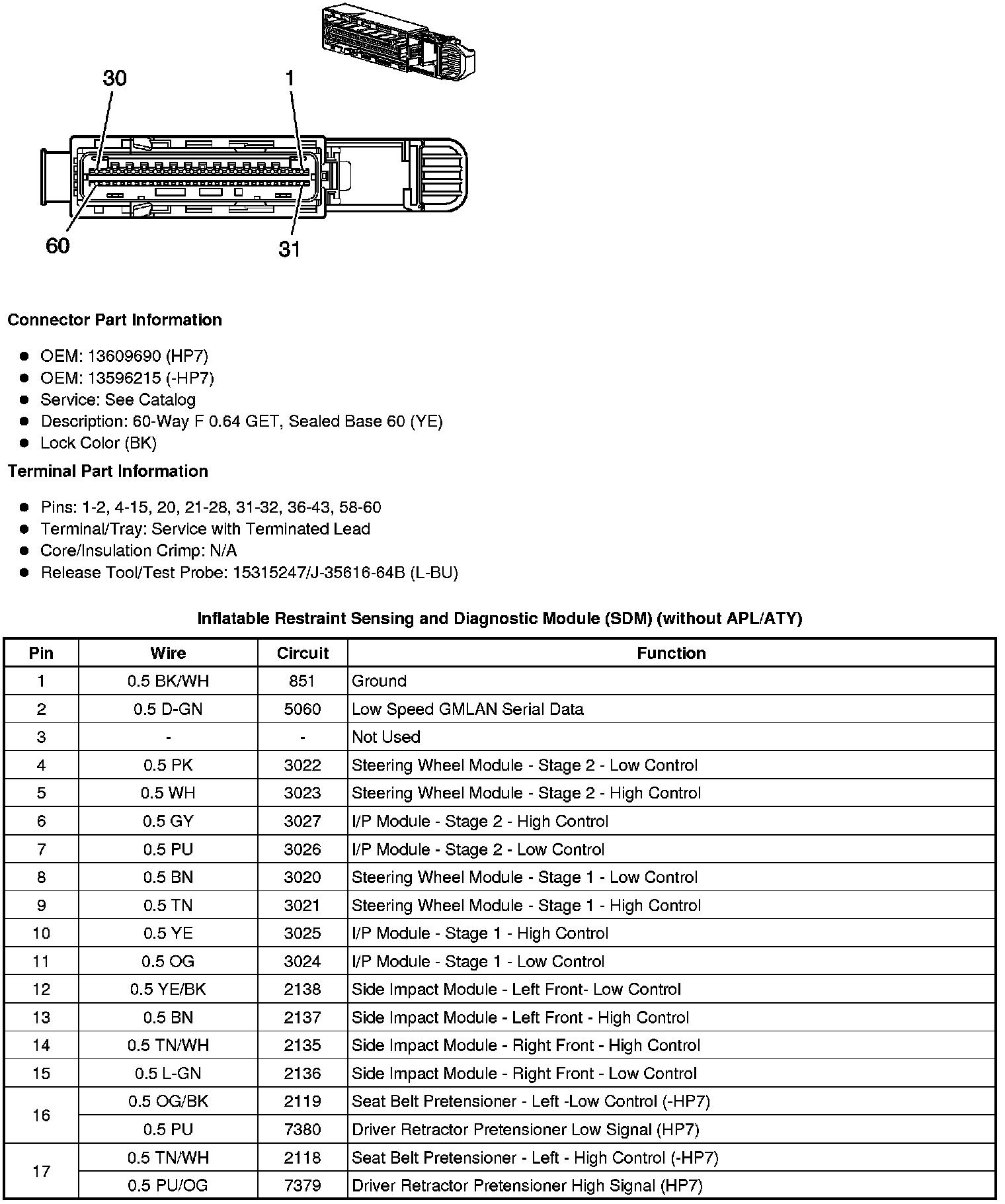 Inflatable Restraint Sensing and Diagnostic Module (SDM) (with APL/ATY)