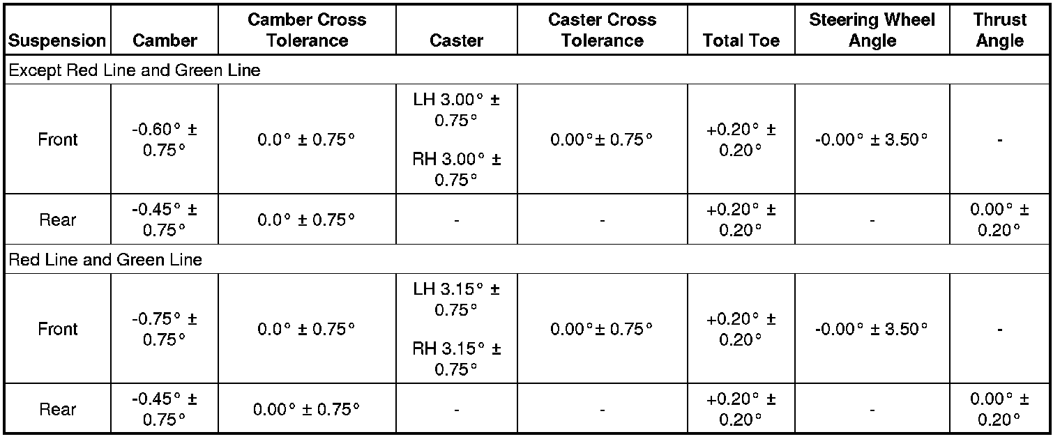 Wheel Alignment Specifications