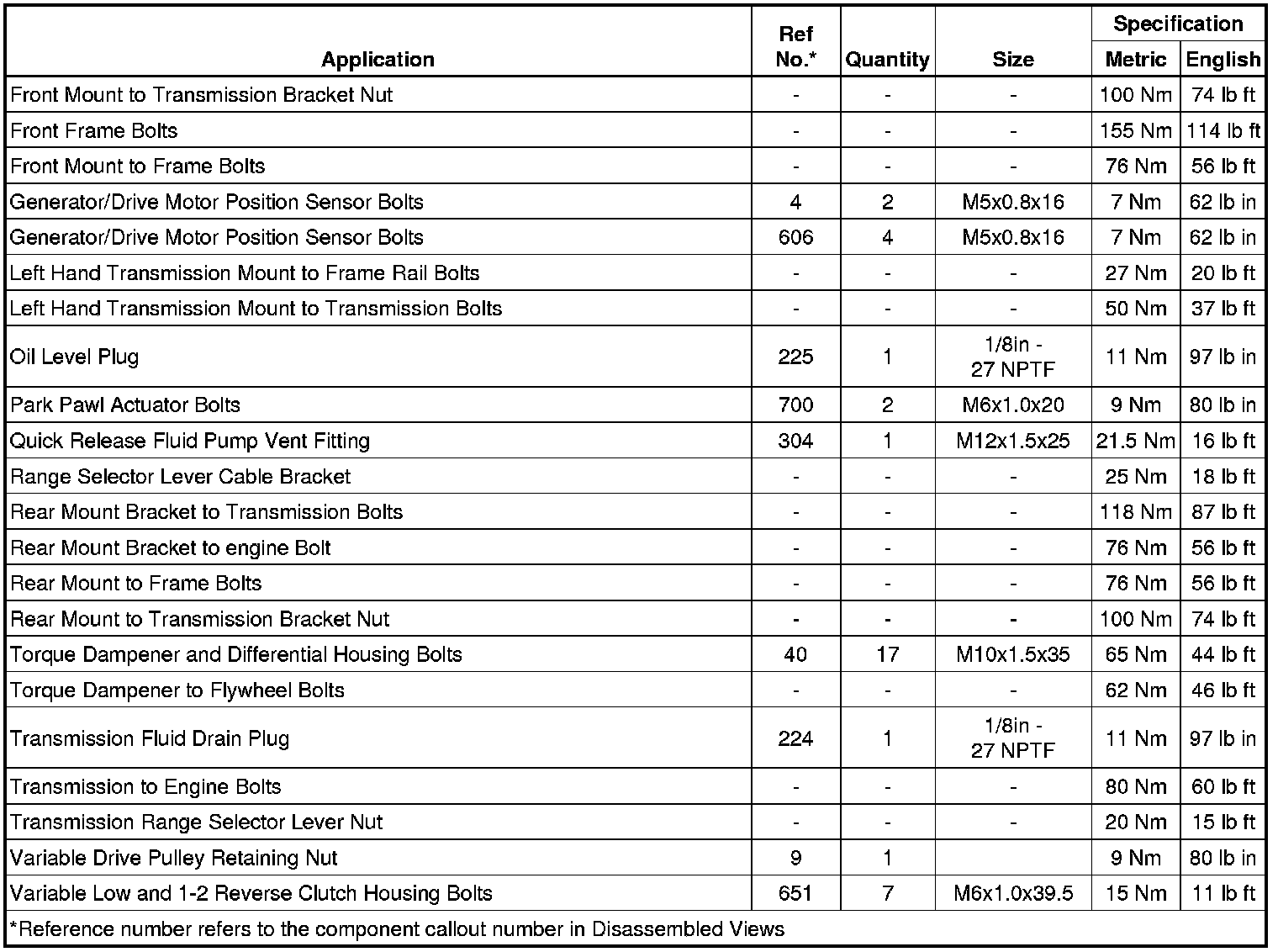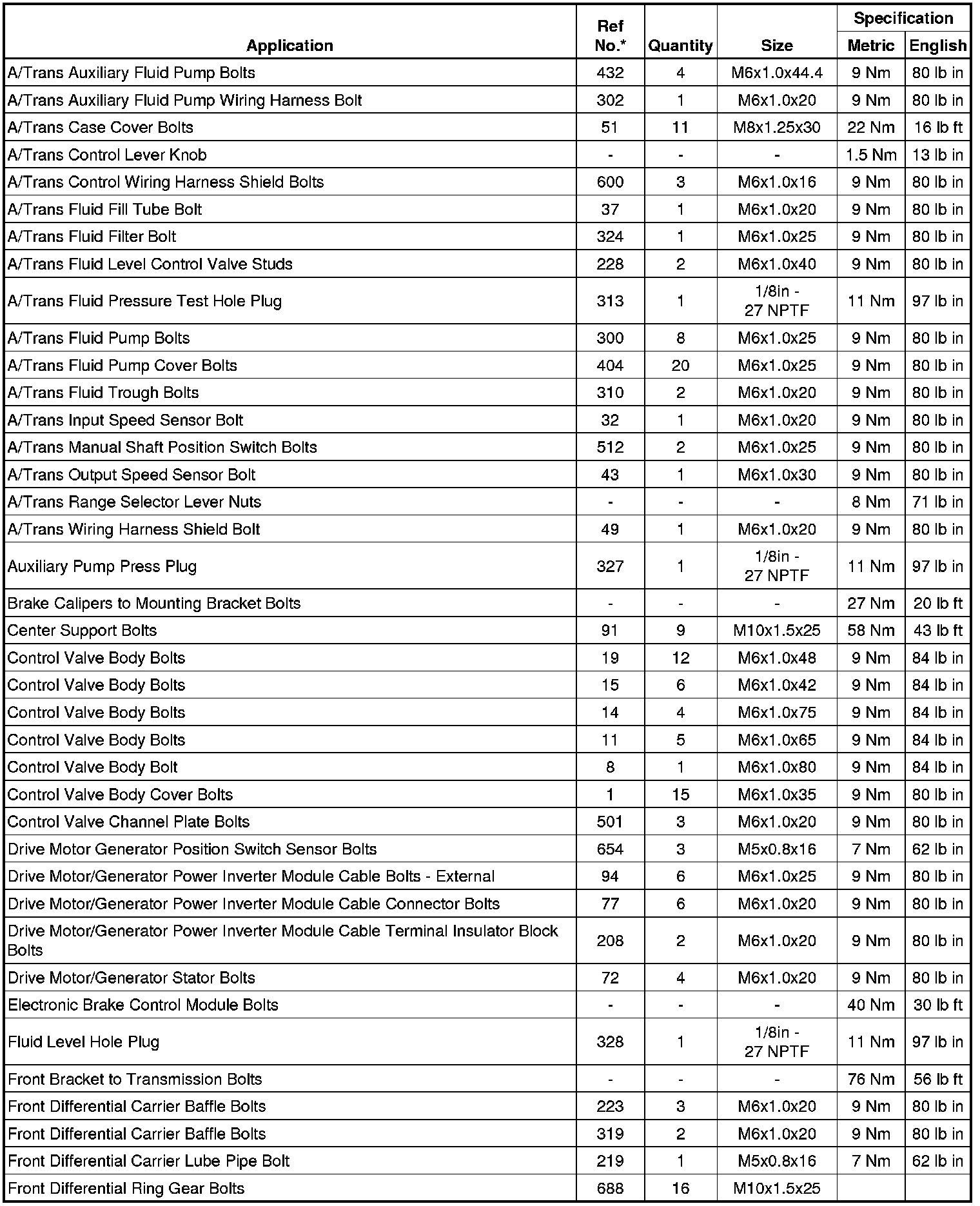 Fastener Tightening Specifications