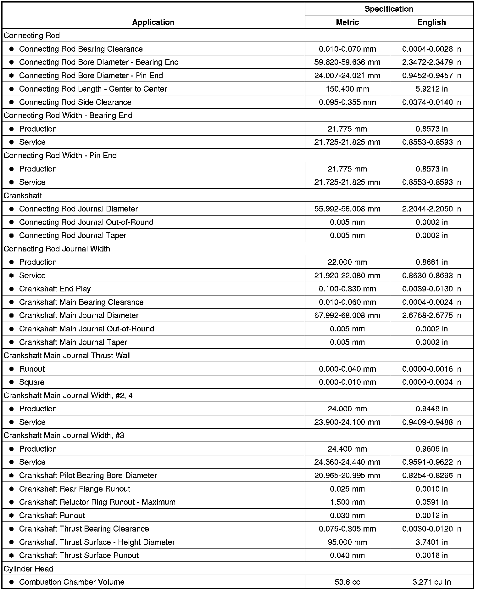 Engine General Specifications & Service Limits