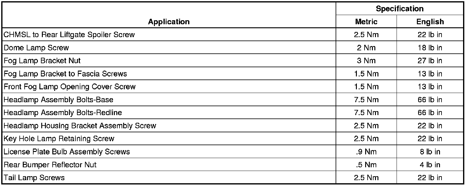 Fastener Tightening Specifications