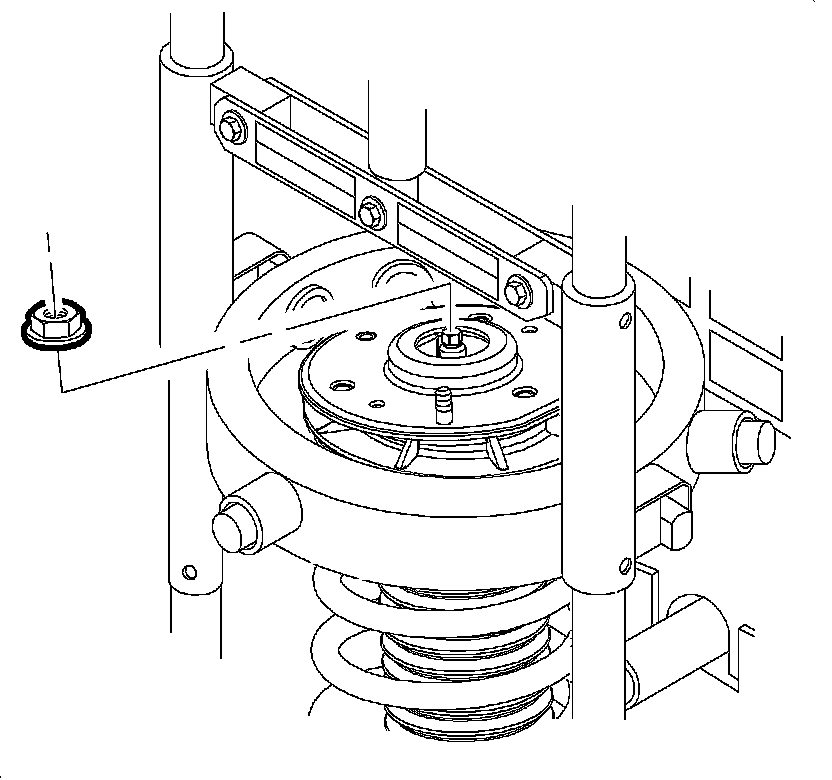 4. Assemble the upper spring seat onto the strut shaft and align the flat with the strut to knuckle mounting bracket.