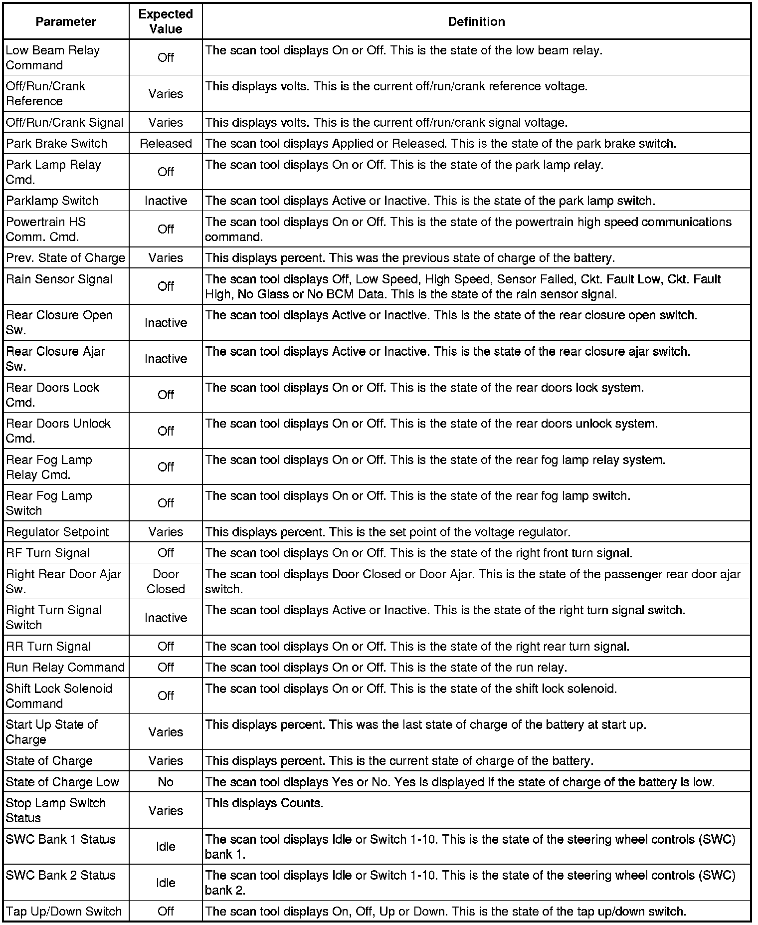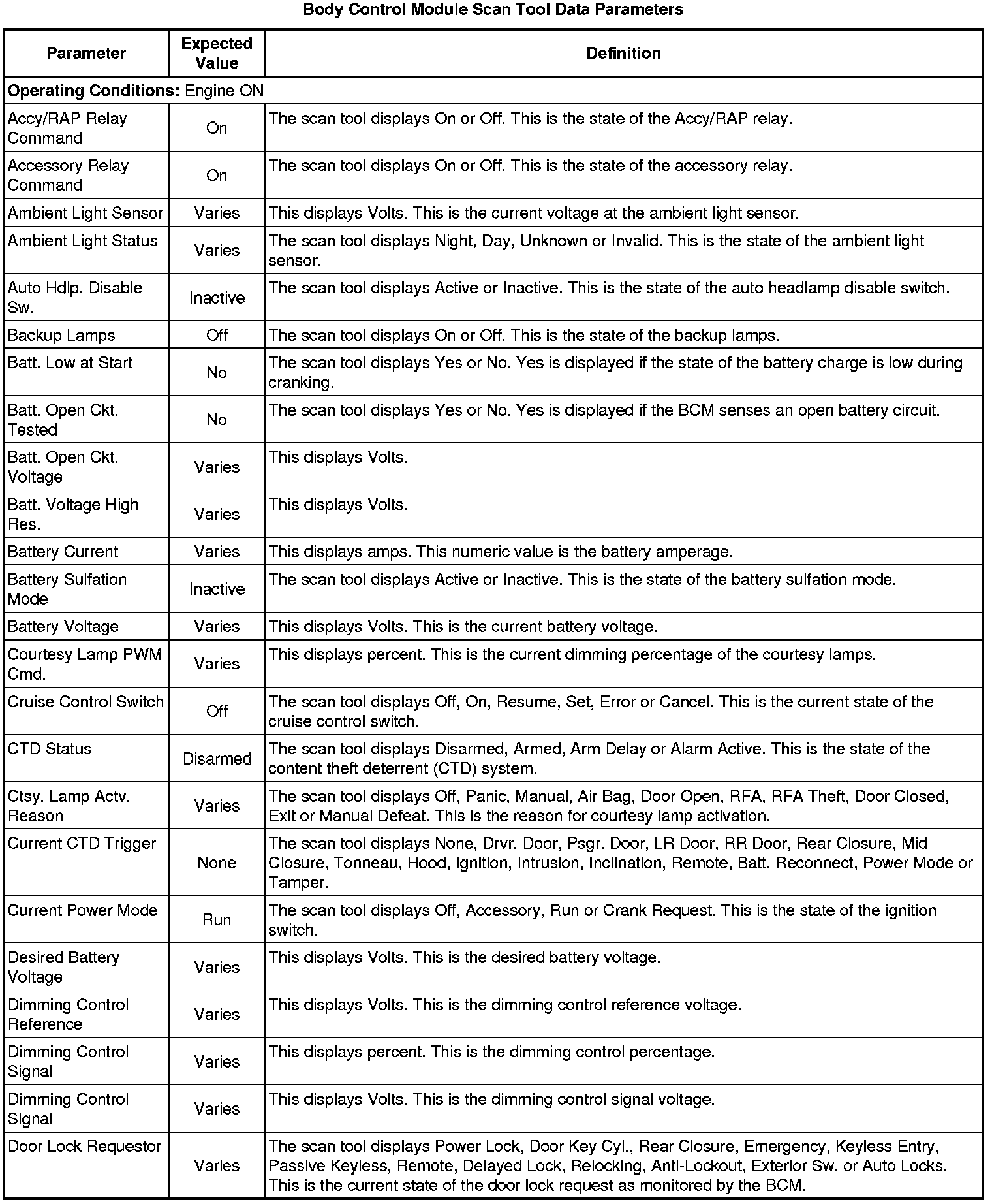 Body Control Module Scan Tool Information