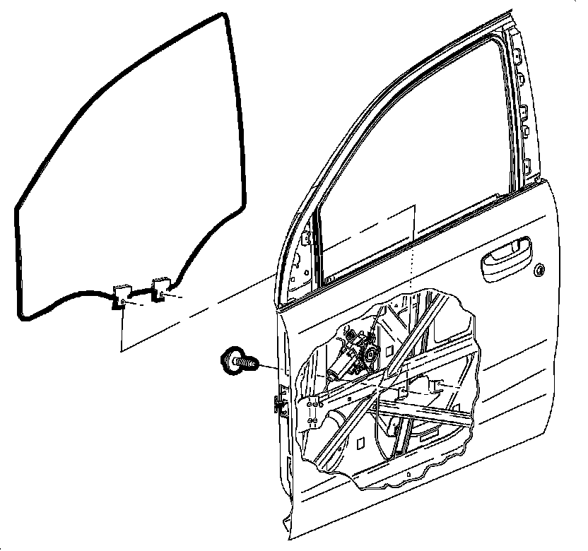 7. Remove the window by tilting outboard and pulling the window out of the door through the door belt opening.
