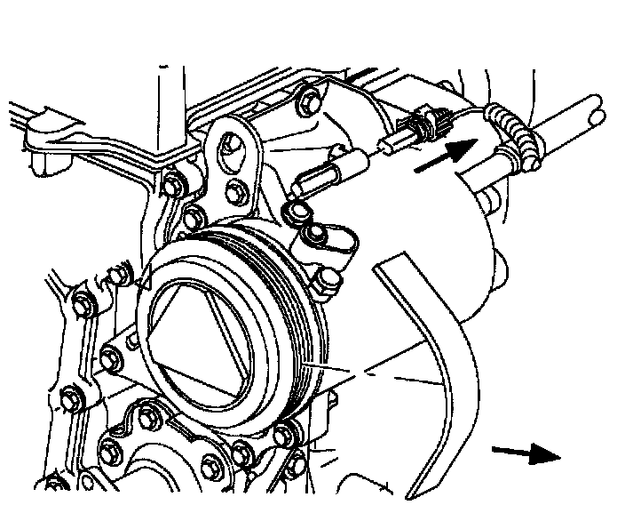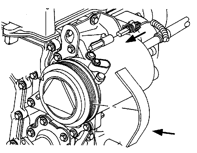 4. Remove accessory drive belt from compressor clutch pulley by rotating belt tensioner clockwise.