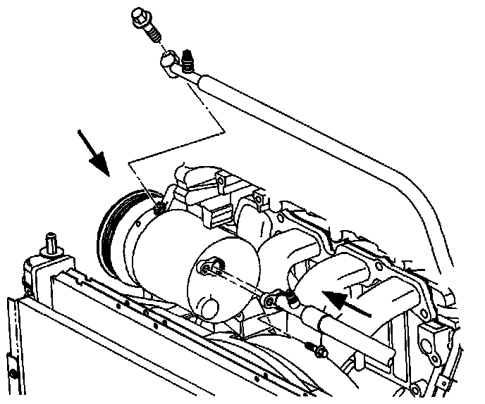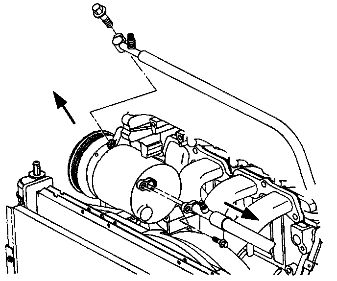 4. Install hoses to the compressor low and high side ports. Tighten bolts to specifications.