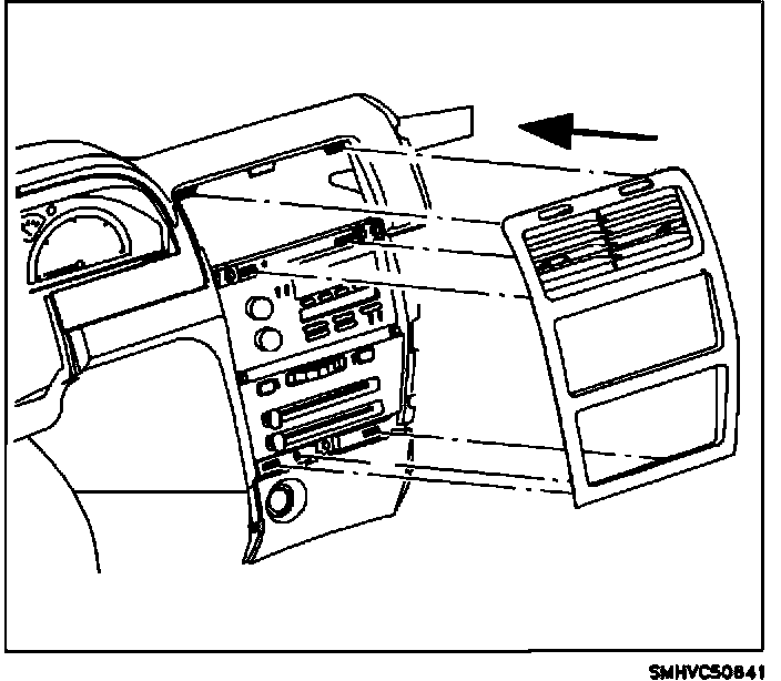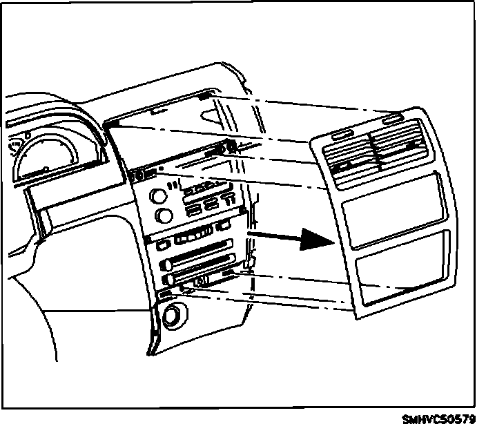 2. Carefully remove the center air outlet/trim panel by pulling outward at clip location.