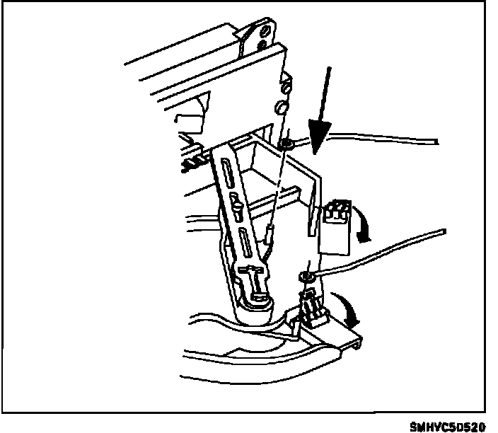 6. Check temperature and mode lever for full travel and no backlash. Adjust each lever if necessary by pushing the lever to the side that springs back. While holding slight pressure against the lever, open the hold-down adjustment clip. Adjust the cable and close the hold-down adjustment clip.