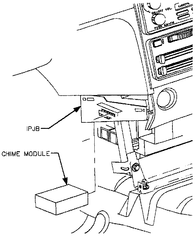 The Instrument Panel Junction Block (IPJB) is located under the center of the instrument panel directly in front of the console.