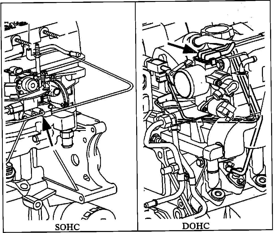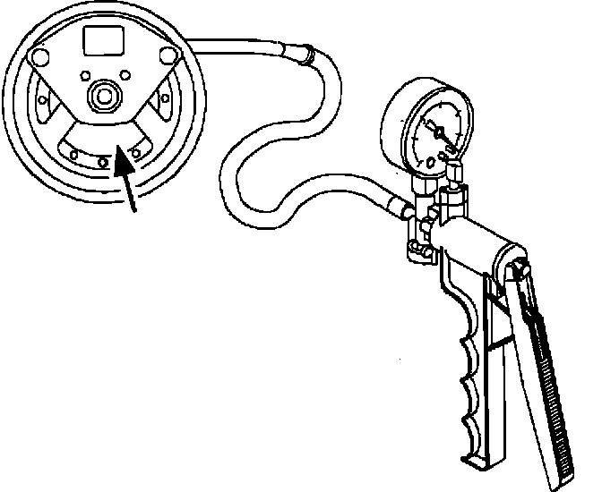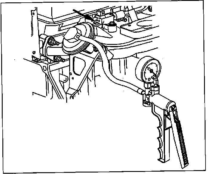 ^ With the ignition "OFF", connect a hand held vacuum pump to the EGR vacuum line at the throttle body.