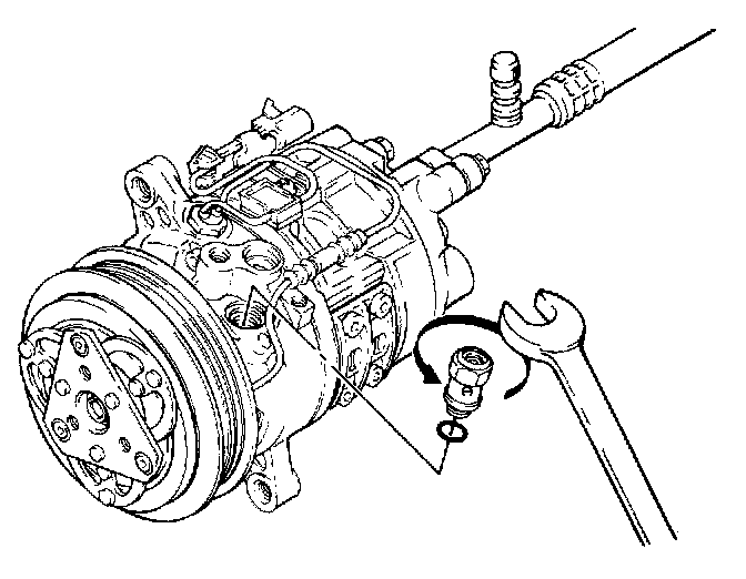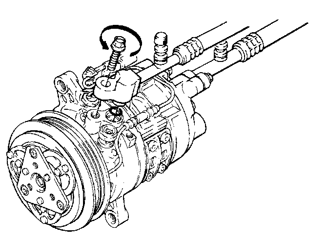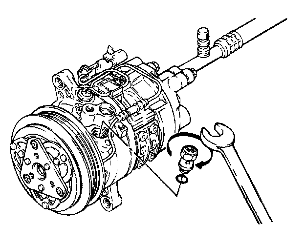 2. Lubricate and install new O-ring on high side hose. Install high side hose to compressor high side port. Torque to specification.