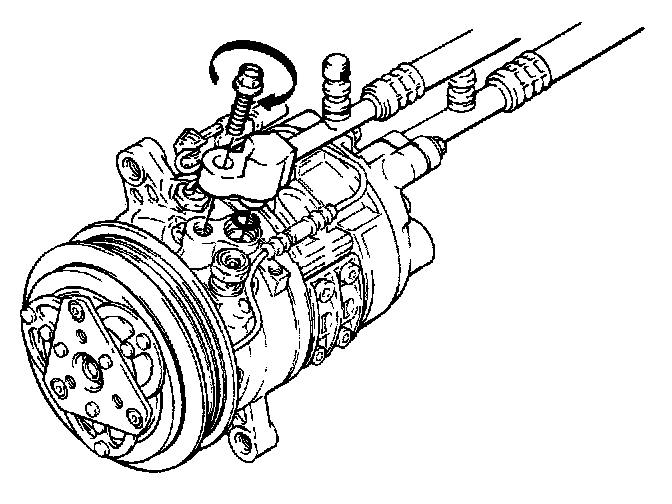 1. Lubricate pressure relief valve O-ring with new SATURN compressor oil. Install valve and torque to specification.