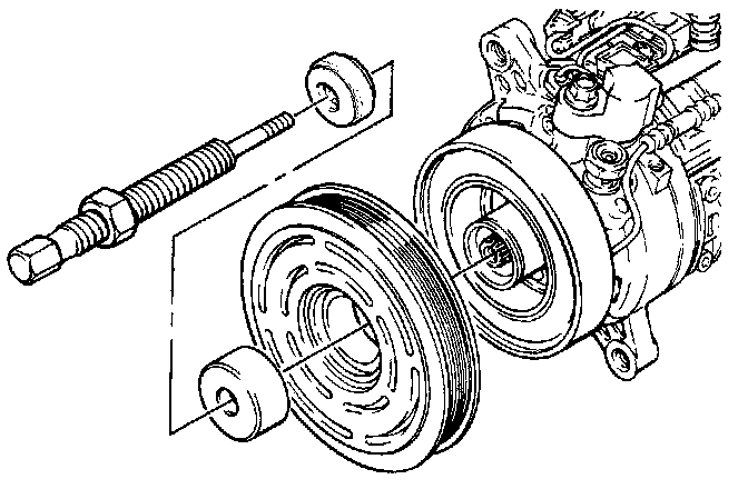 IMPORTANT: Do not remove pulley without using adapter. If compressor shaft is pressed on, compressor will be damaged.