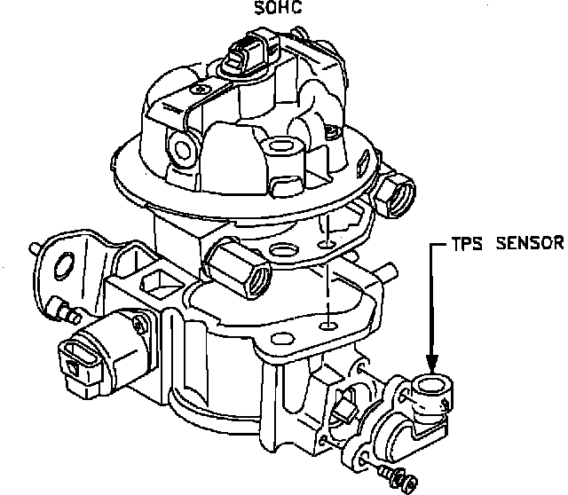 NOTE: The TPS is not adjustable. Turning the ignition "OFF" and "ON" will reset the TPS value. Closed throttle voltage limits are 0.35 volt to 0.70 volts.