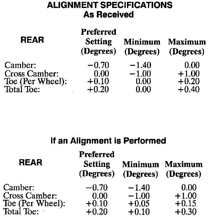Rear Alignment Specifications