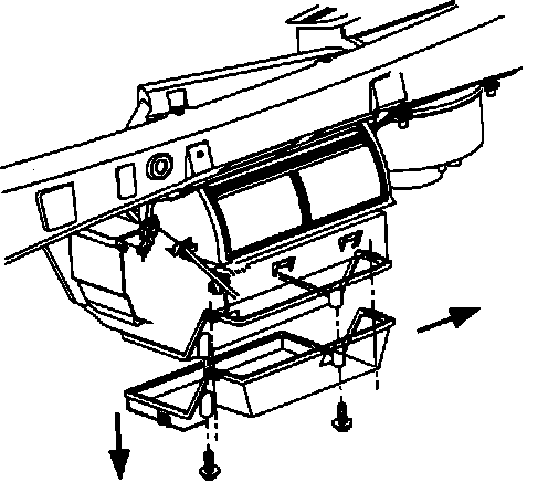 15. Disconnect heater core electrical connector, then remove lower heater core retainer attaching screws.
