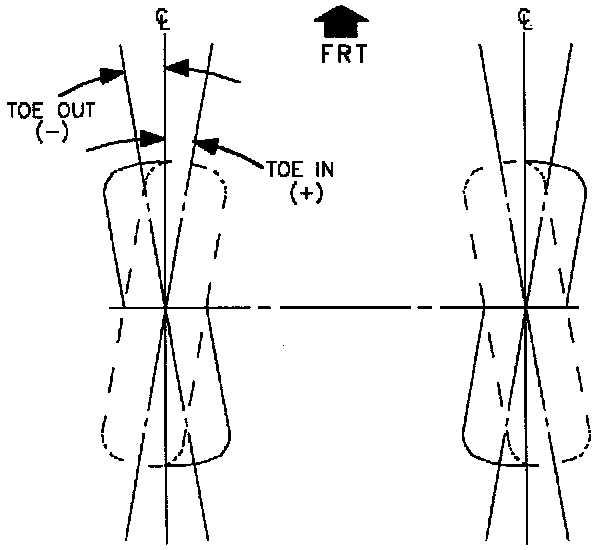 Toe is a measure of how far a wheel is turned in or out from the straight ahead direction. When the front of a wheel is turned in, the toe is positive. When turned out, the toe is negative.