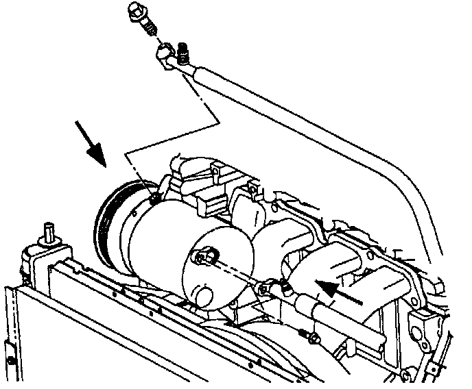 4. Install hoses to the compressor low and high side ports. Tighten bolts to specifications.