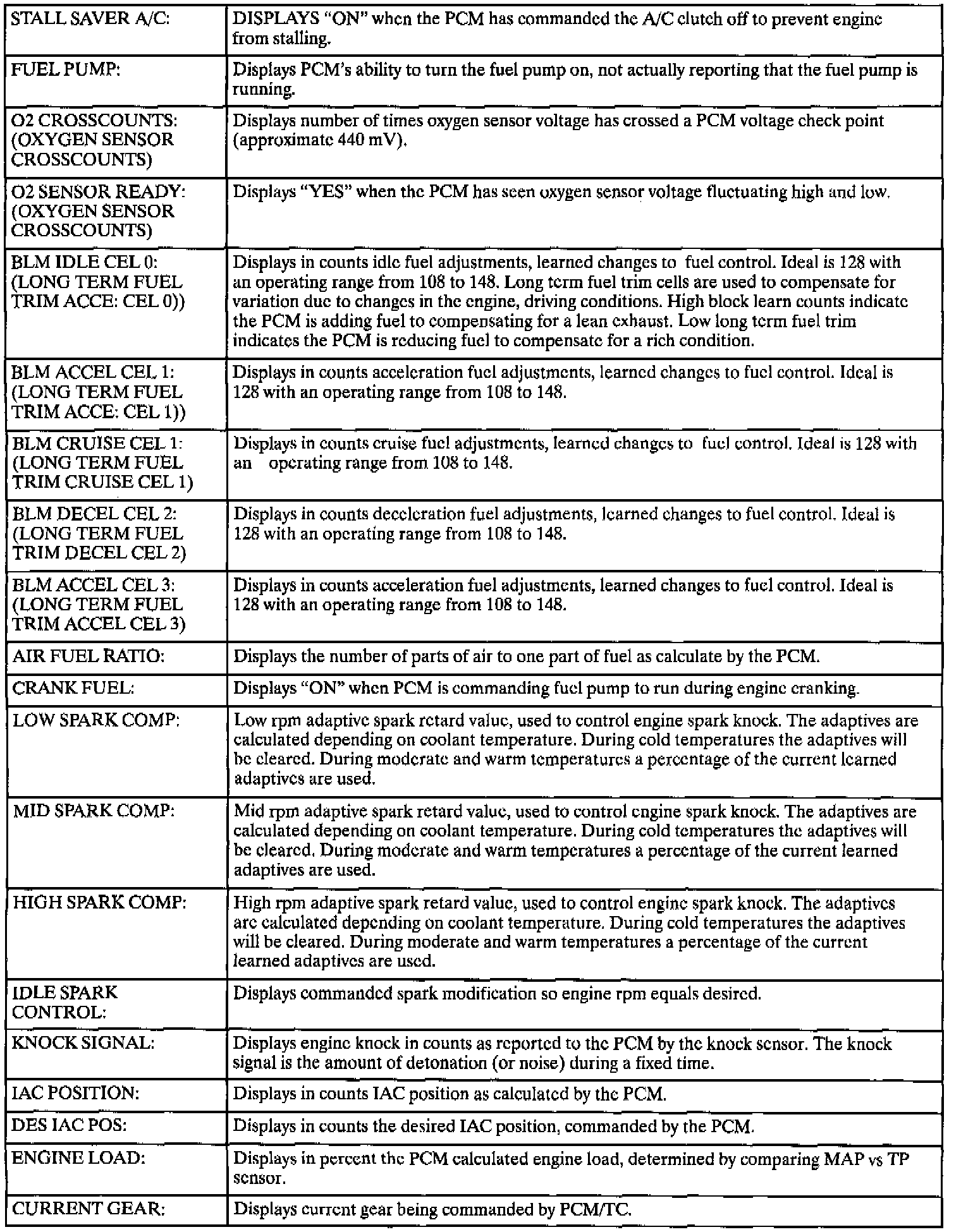 Saturn Scan Tool (PDT) Parameter Info - Engine Control (EC)