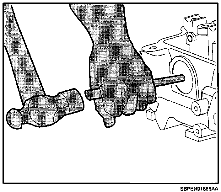 5. Remove the rear camshaft bearing plug by tapping it inward (toward the camshaft) using a punch and a hammer. Remove the plug from the cylinder head and discard.