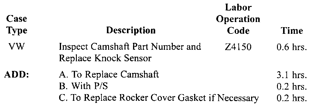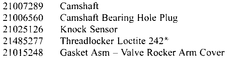 Intermittent Lack Of Power and/or DTC P0326 (Replace Camshaft - P/N 21007289, If Necessary and Replace Knock Sensor - P/N 21025126)