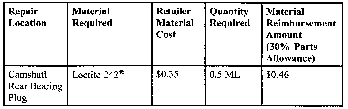 The Loctite 242(R) must be claimed as a "material" using Net Item Code "M." Refer to the table for the material required, material cost, quantity required, and material reimbursement amount.