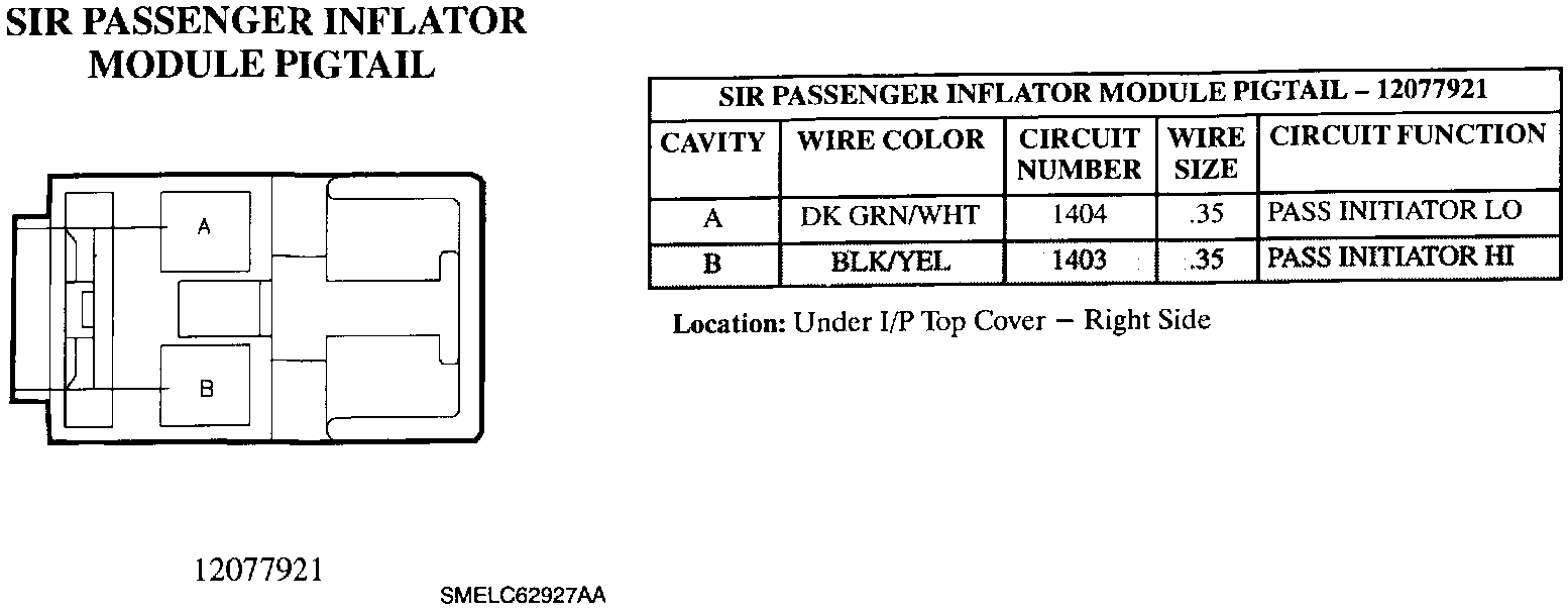 SIR Passenger Inflator Module Pigtail: