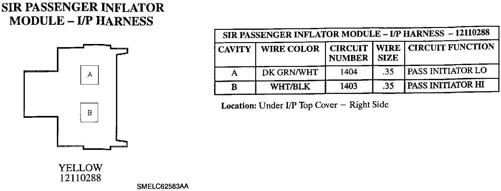 SIR Passenger Inflator Module - I/P Harness: