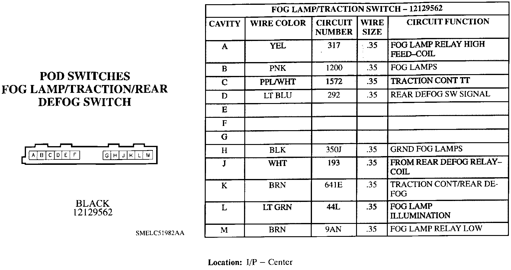 POD Switches Fog Lamp/Traction/Rear Defogger Switch: