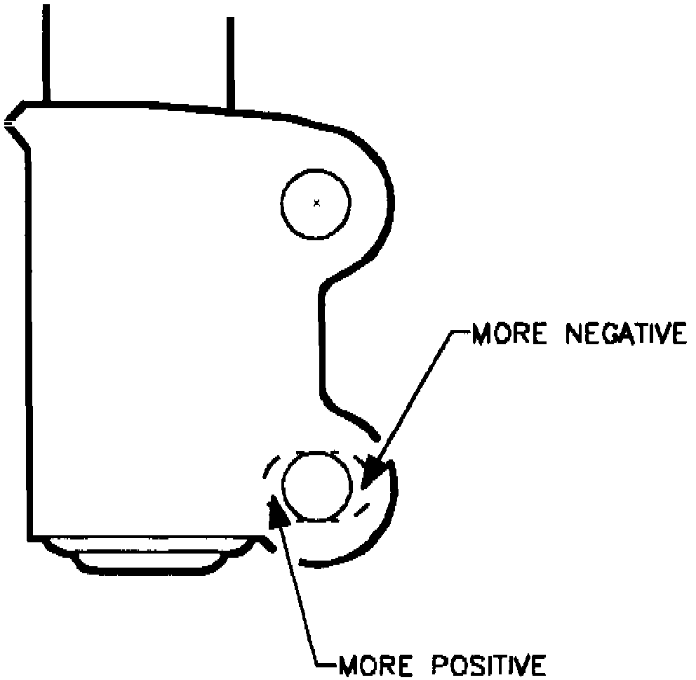 3. Slide strut forward or rearward to adjust caster. Movement of approximately .157 inch will change caster by about 1/2 of a degree. Body attachment holes may need to be filed or ground into oval slots to allow enough front to rear strut movement to adjust caster to specifications. Do not exceed .354 inch in slot width.