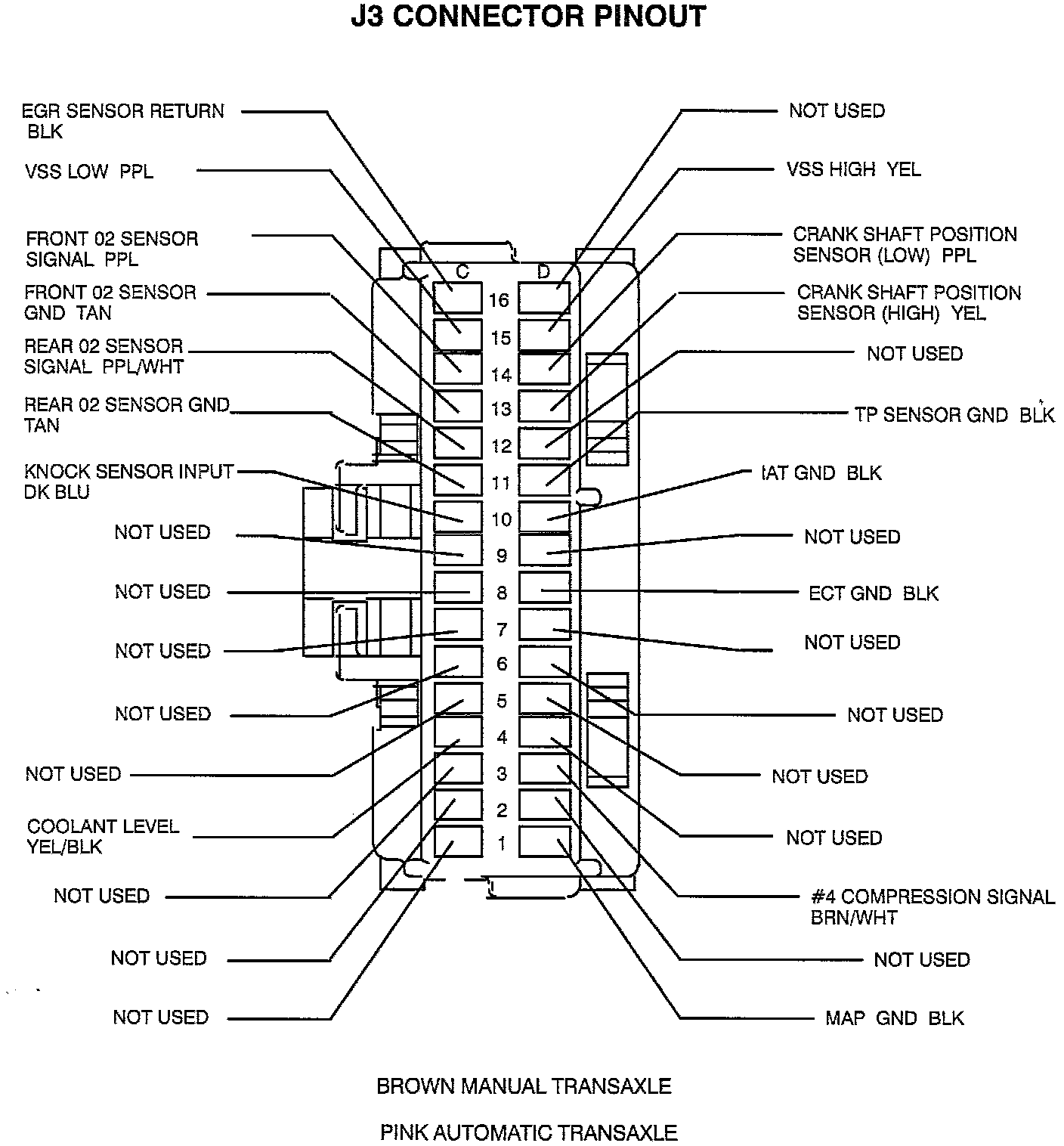 J3 Pinout (Brown - M/T) (Pink - A/T)