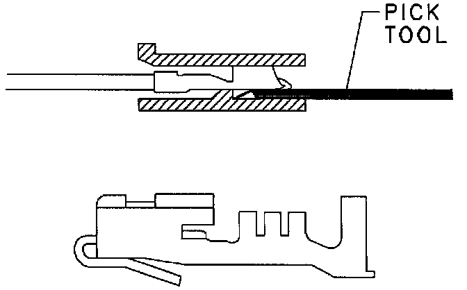 2. Insert the terminal lock release tool into the front of the connector cavity. Pull the wires and terminal out of the back of the connector.