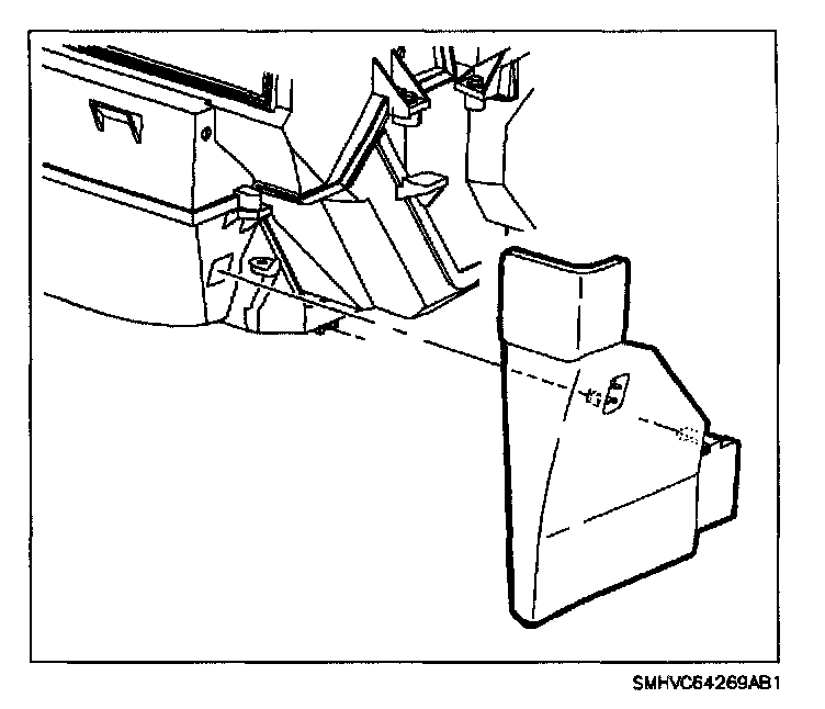 5. From passenger side of vehicle, wipe clean top center surface of heater duct.