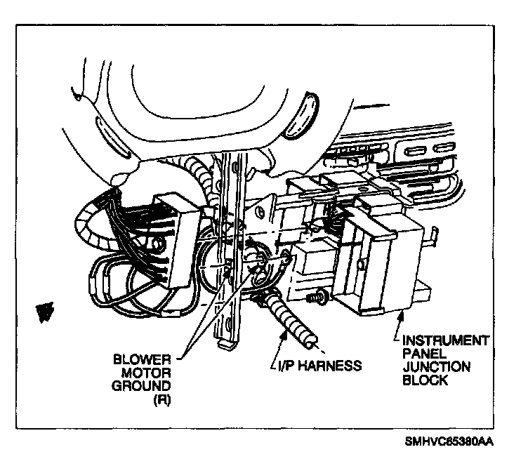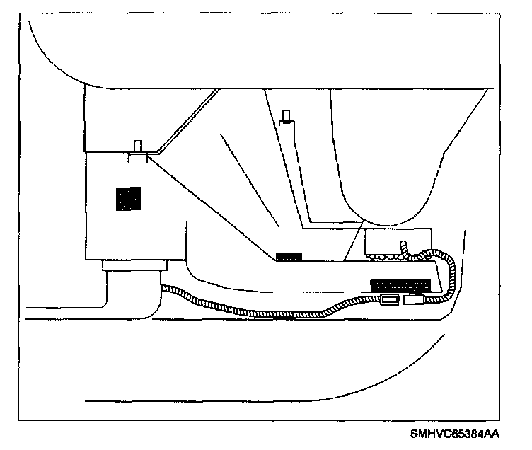 14. Route delayed blower motor control module jumper harness under front heater duct, forward of rear heater duct (if equipped), to the I/P wiring harness on the driver's side of the vehicle.