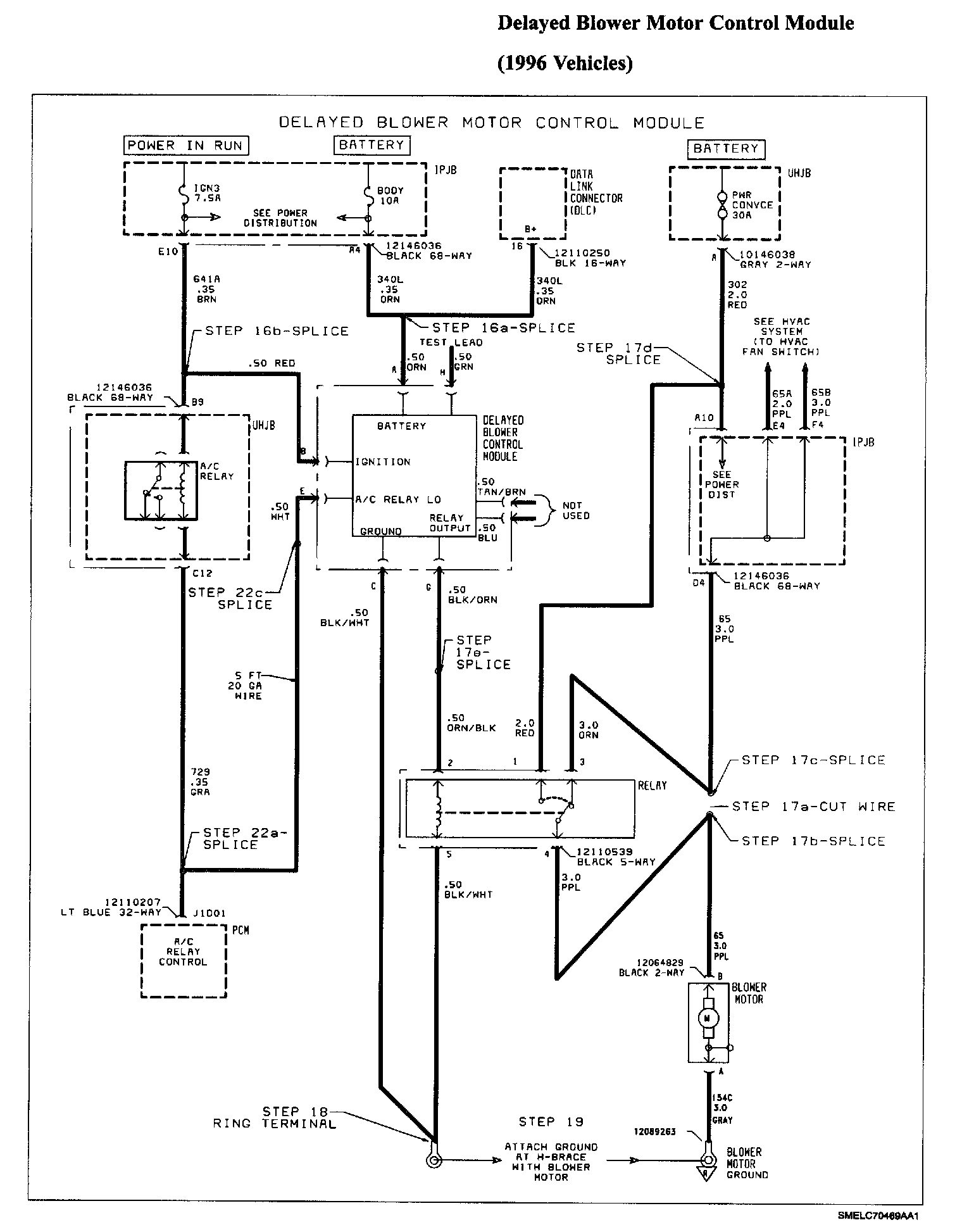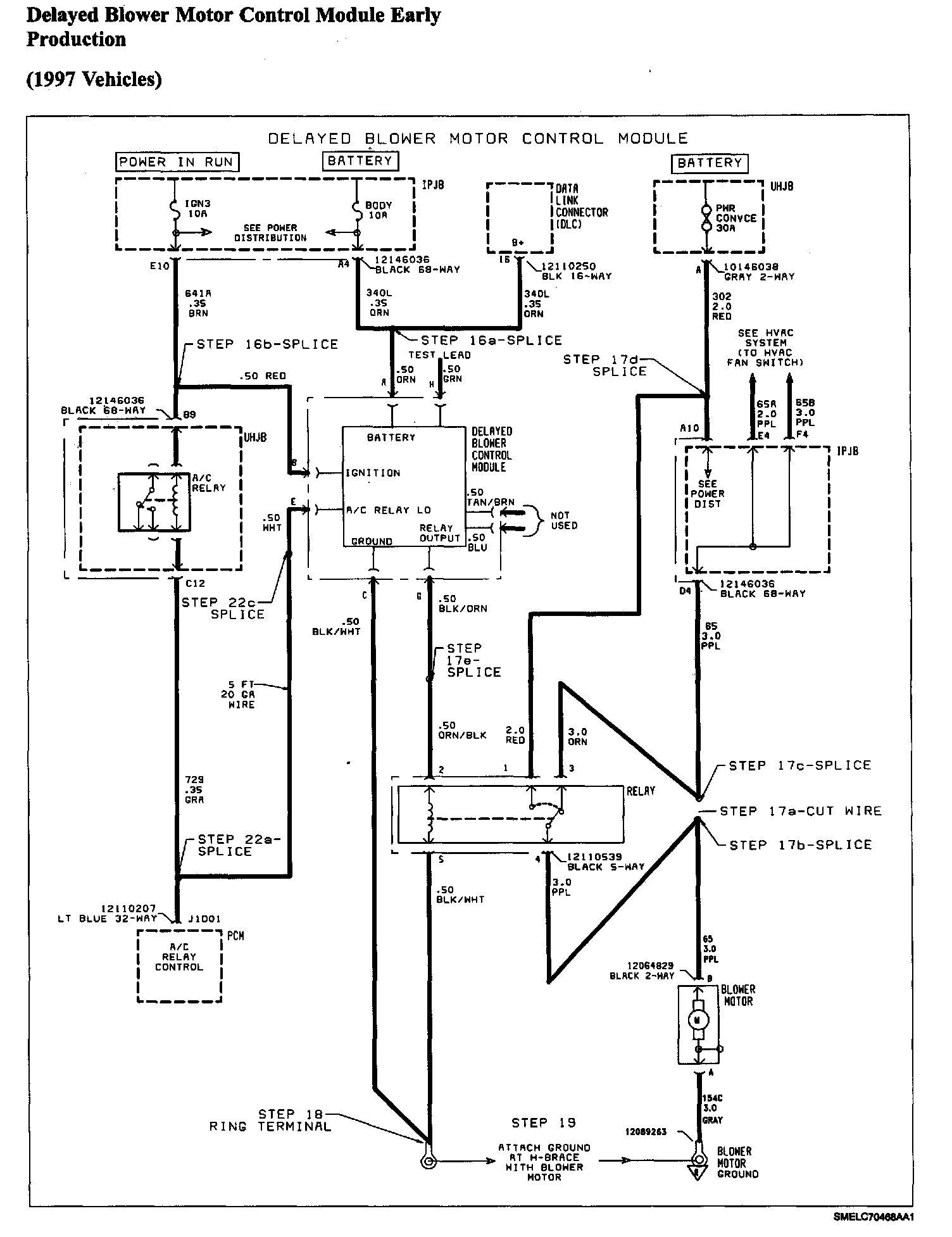 17.5 Splice ORN/BLK wire from high-blower relay to BLK/ORN wire from delayed blower motor control module.
