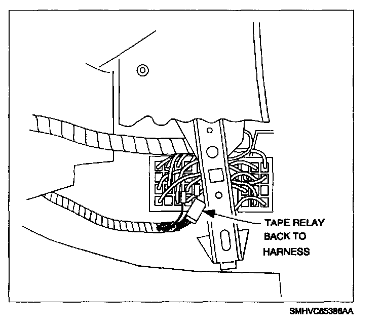 20. Position high-blower relay rearward in car so as to prevent any rattles, and tape to harness.