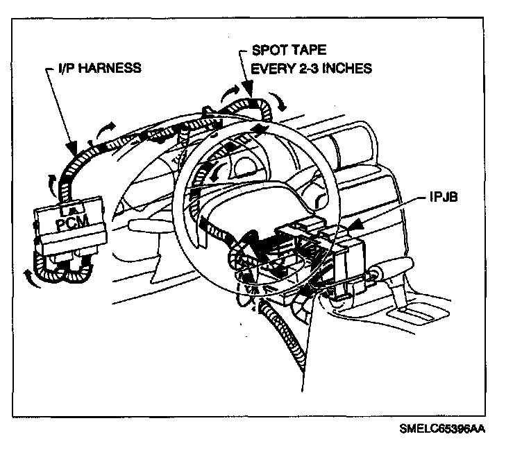 22.2 Route wire to the IPJB as follows (using electrical tape, spot tape wire to harnesses approximately every 51-76 mm (2-3 in.):