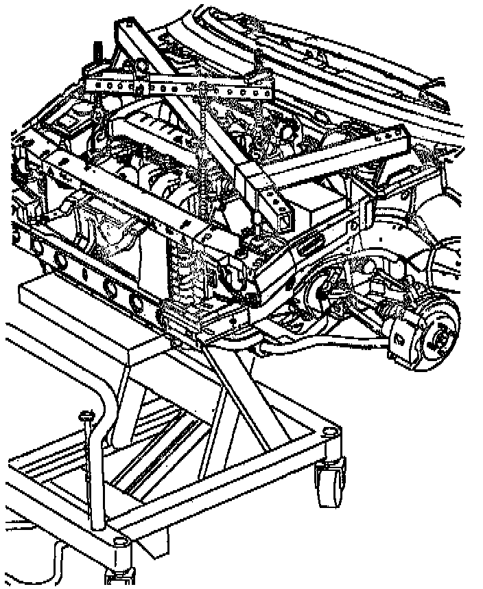 IMPORTANT: Make sure that the following parts are correctly positioned when raising cradle into vehicle: