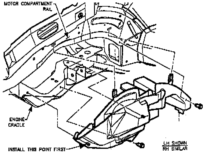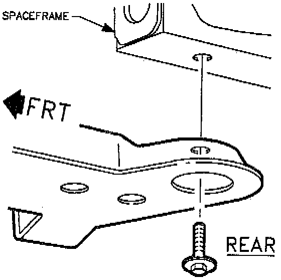58. On Coupes, install right and left lower fascia brace to cradle J-nuts.