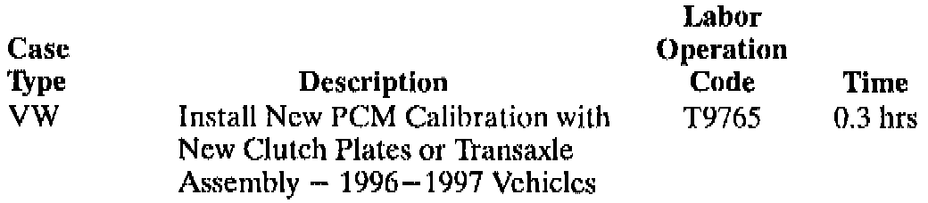 When reprogramming the PCM after replacing the 3rd or 4th clutch plate assemblies or automatic transaxle assembly, use the following Labor Operation Code for installing the PCM calibration. To receive credit for this repair during the warranty coverage period, submit a claim through the Saturn Dealer System as shown.